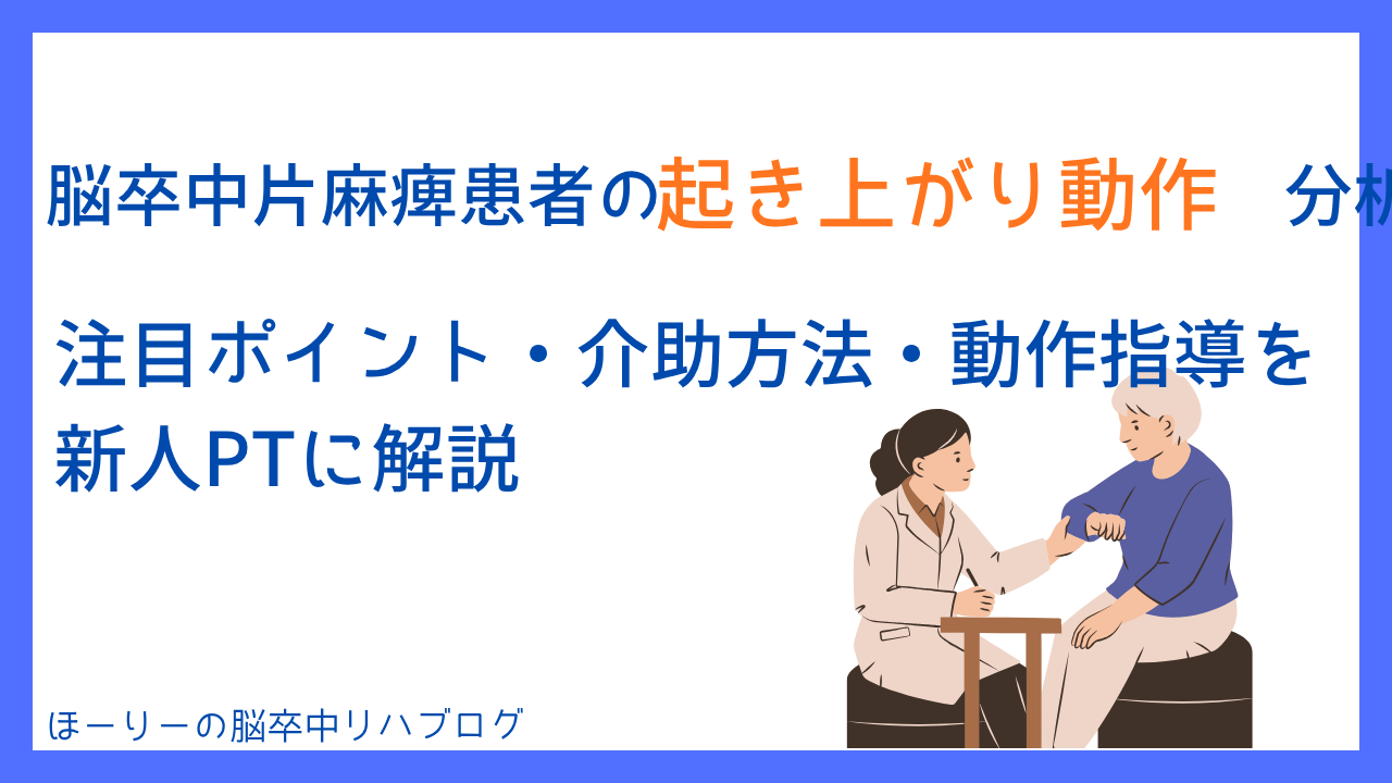 この記事では、起き上がり動作の正常パターン(相分け)→片麻痺患者の特徴と問題点→評価のポイント→介助方法→動作指導のコツを順を追って解説します。臨床での動作分析と治療立案にすぐ活かせる内容にまとめましたので、ぜひ最後まで読んでみてください。